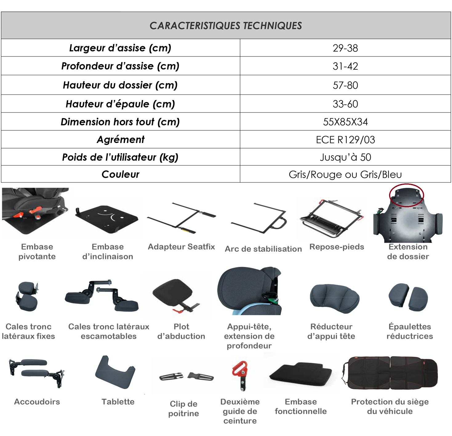 Réglage continu de l'angle du dossier avec levier de dégagement rapide